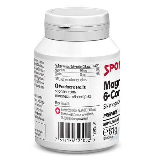 Sponser Magnesium 6-Complex za razliko od klasičnih magnezijevih dodatkov vsebuje izključno organske oblike magnezija (citrat, malat, glukonat, bisglicinat, hidrogen citrat in askorbat), ki so znane po boljši absorpciji v telesu.